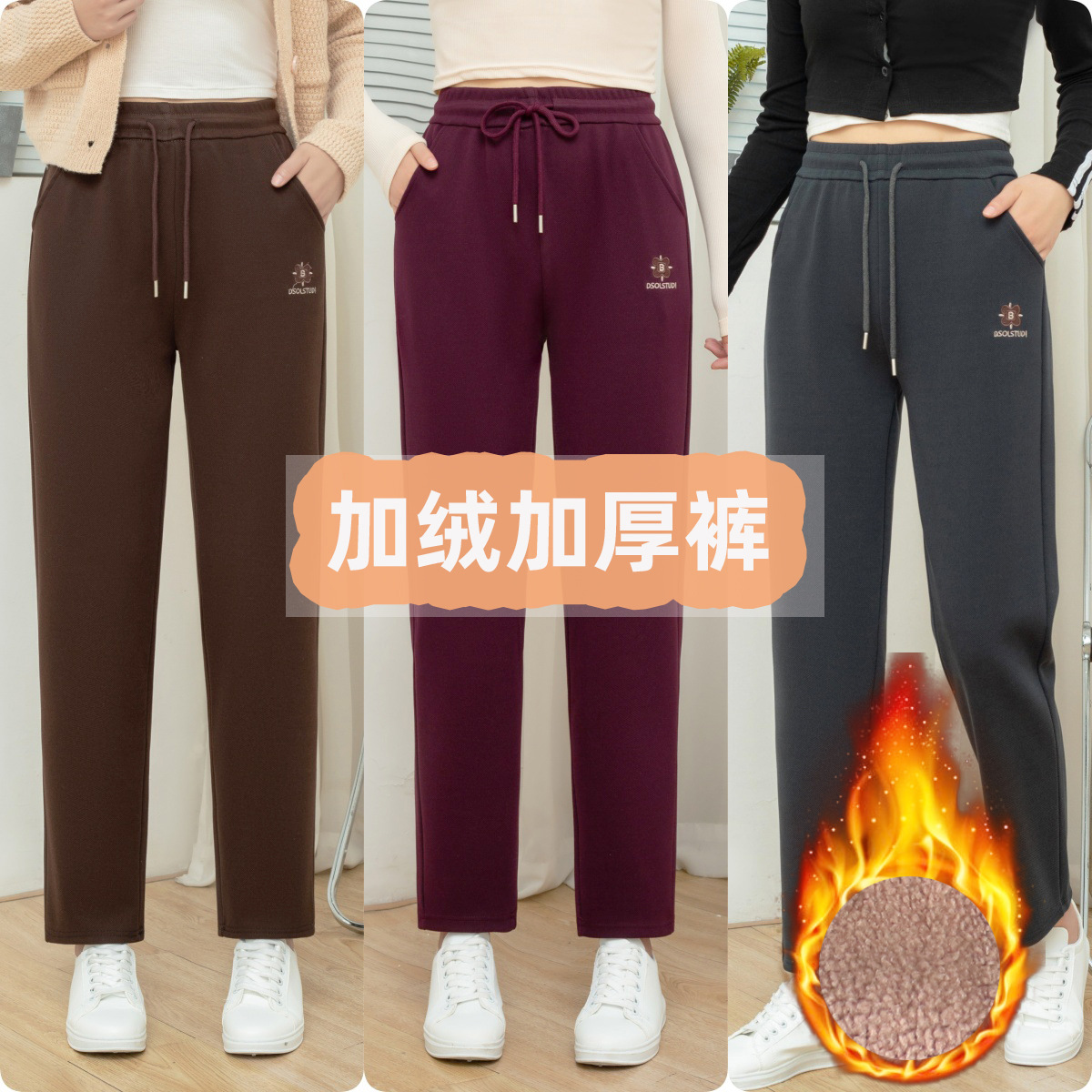 2025 Winter Thickened Gemstone Pattern Women's Pants Trendy Fashionable Middle-Aged and Elderly Mom's Pants Popular Casual Straight-Leg Pants