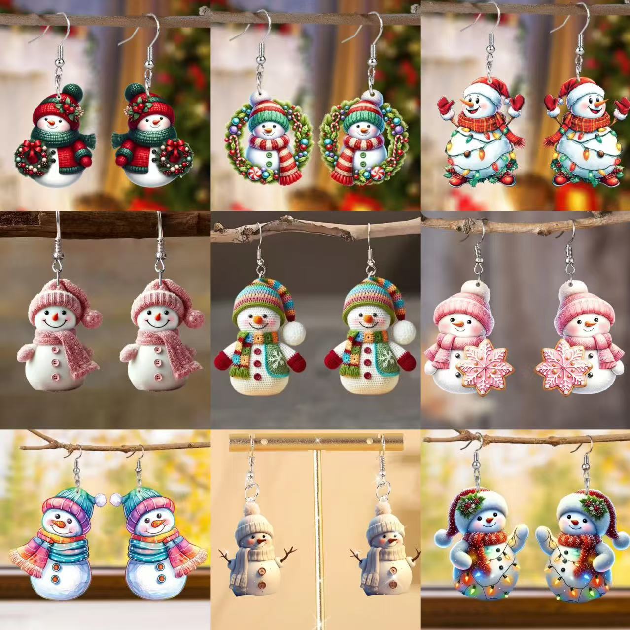 Cross-Border Hot Selling Winter Love Song Cute Snowman Series Earrings Christmas Variety of Flat Acrylic Snowman Earrings