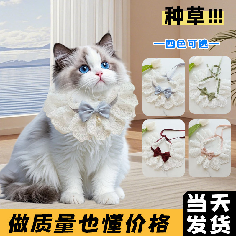 New Pet Saliva Towel Cat Happy Birthday Bib Pet Scarf Cute Cat Neck Collar Wholesale