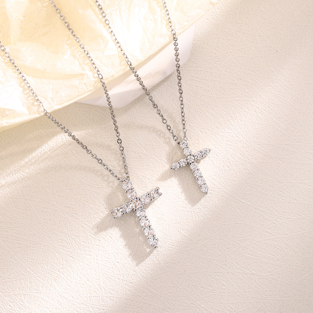 Cross-Border European and American Full Diamond Cross Clavicle Chain Hip-Hop Cool Retro Cross Round Diamond Necklace Sweatshirt Chain