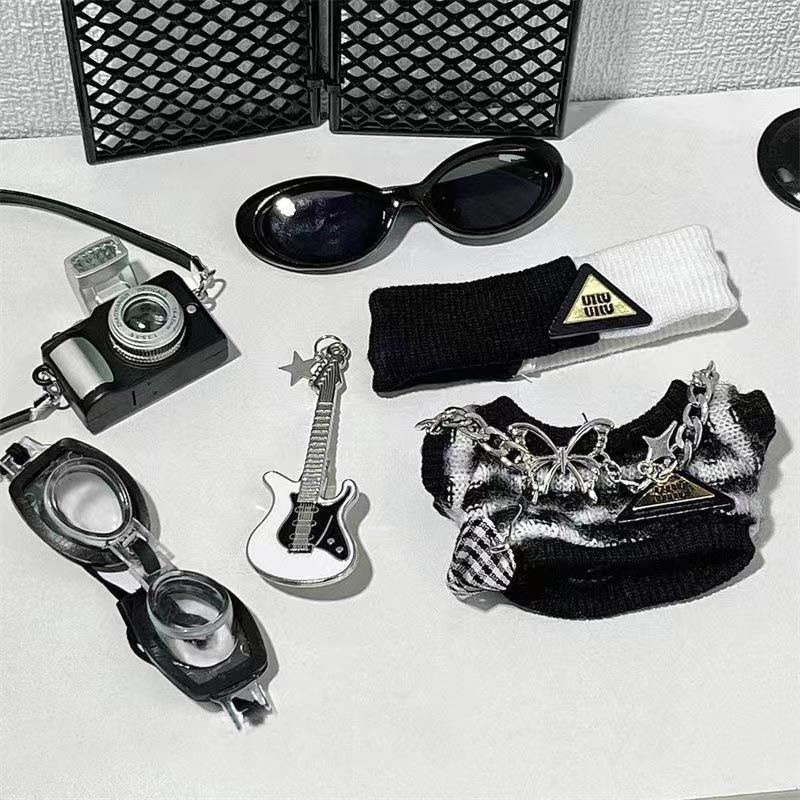 Trendy Cotton Doll 10cm Baby Clothes Black and White Stripesd Suit Headband Sweatshirt Guitar Necklace Full Set of Doll Dress up
