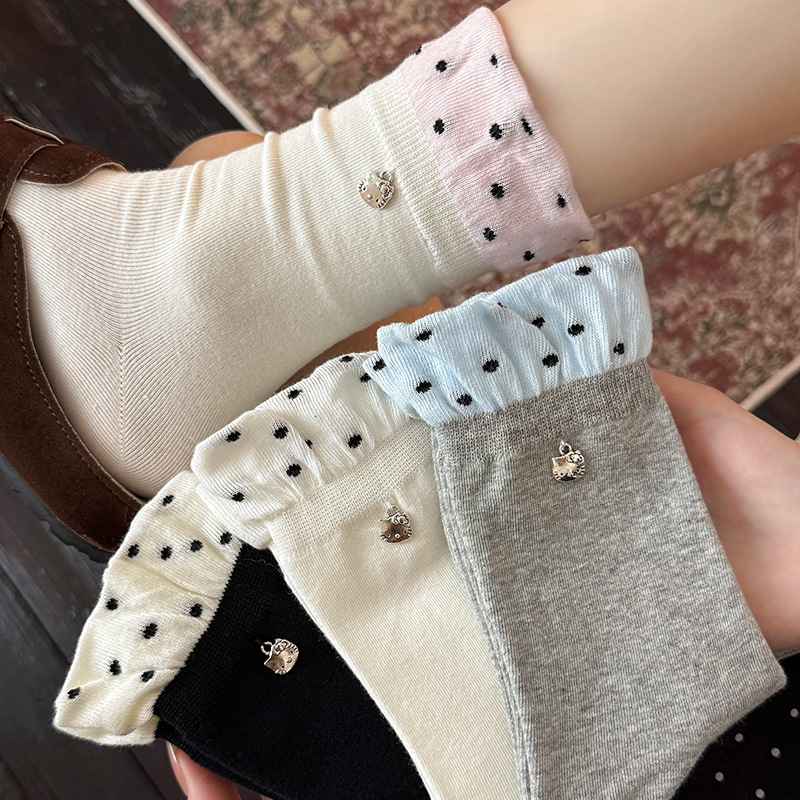 Socks for Women, Pure Cotton, Autumn and Winter New Mid-Calf Socks, Kt Cat Pendant Jewelry Socks, Lace Polka Dot Jk Style Stockings