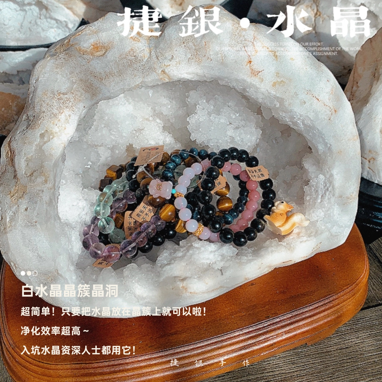 [Crystal Purification and Demagnetization] Natural White Crystal Cluster Geode|Demagnetization Bowl Cornucopia Ornament Container Bracelet