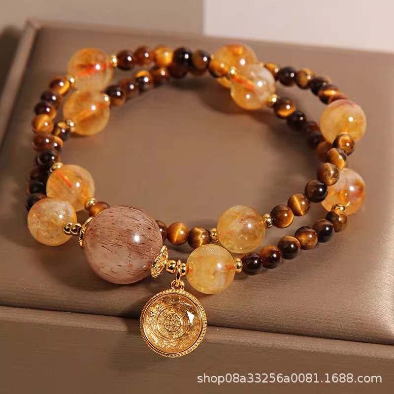 Natural Tiger Eye Stone Necklace Maillard Accessible Luxury High-End Asymmetrical Small Gold Domineering Antique Style Beaded Clavicle Chain for Women