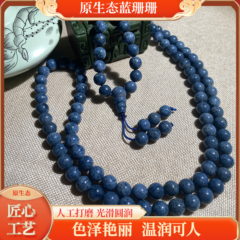 Deep sea treasure primary color grass coral blue coral 8mm108 beads rosary necklace accessories direct sales