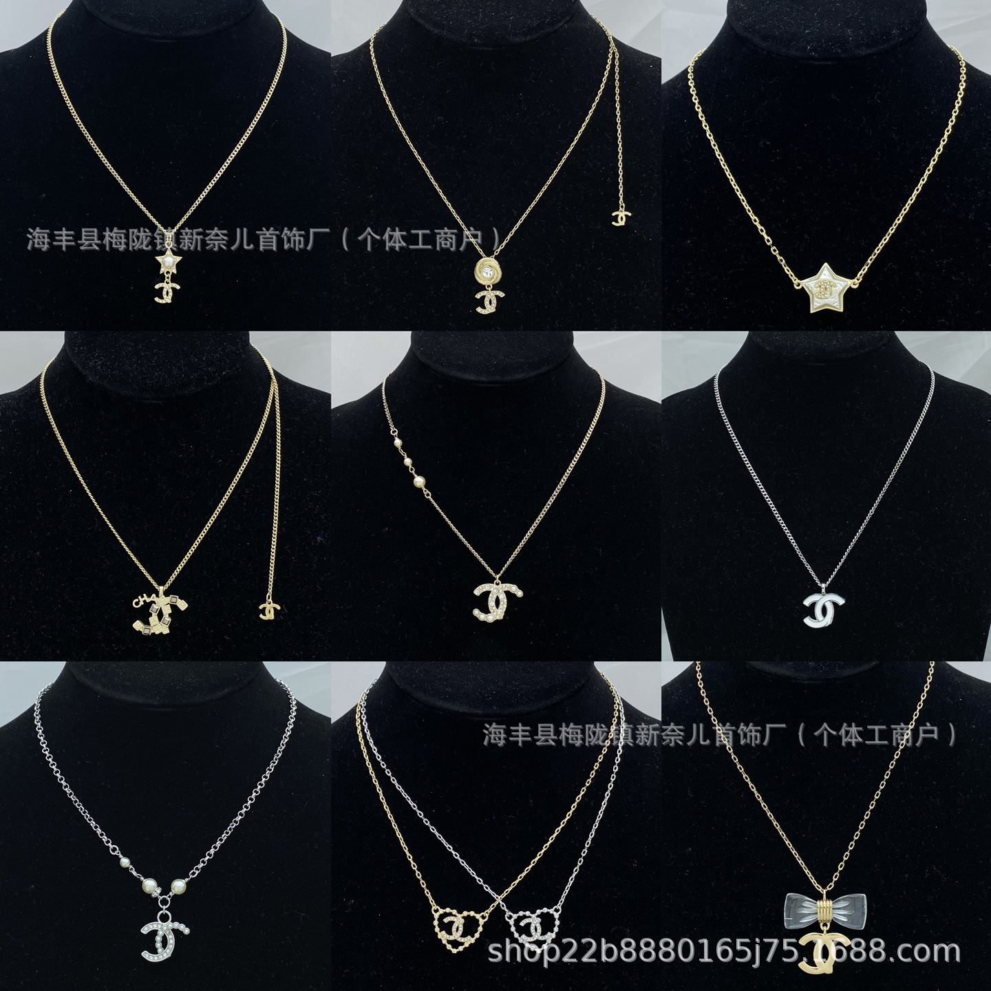Chanel-Style Necklace for Women, New Pearl Double C Letter Chanel Collarbone Chain, High-Quality Chanel Grandma Heart Choker Wholesale