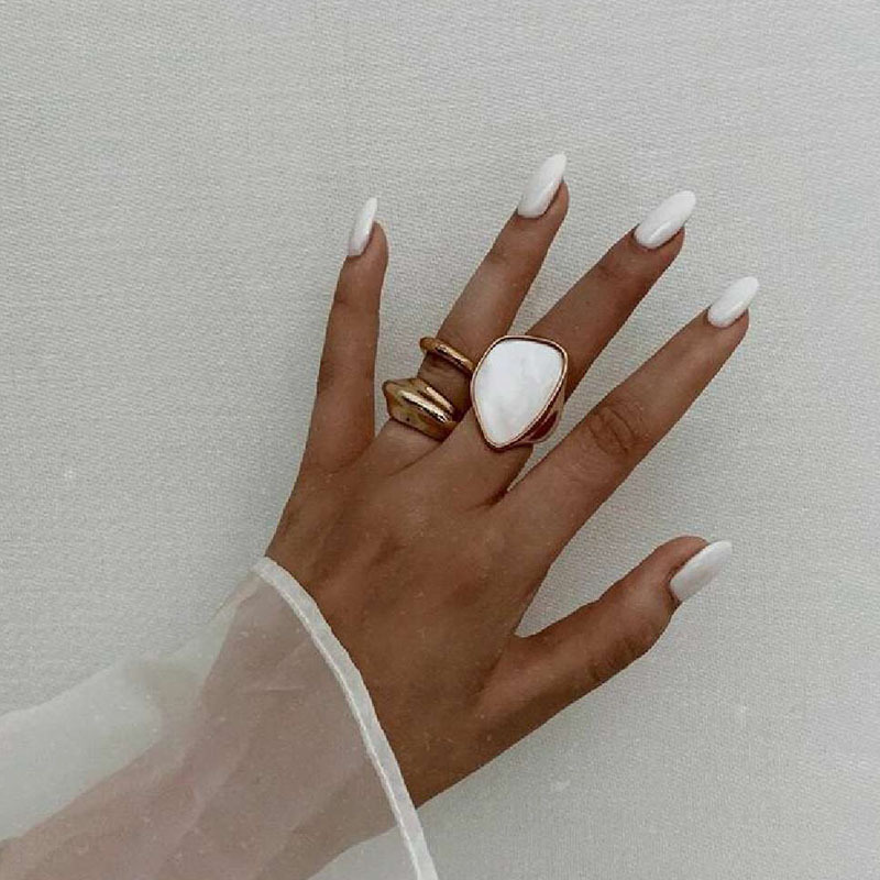 Brass Plated 18K Gold European and American Original Cold Wind White Pearl Shell Mother Shell Small Trendy Heavy Ring Female
