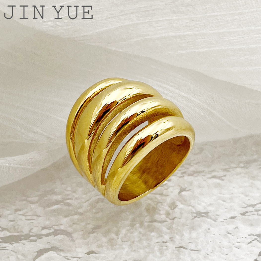 Retro Old Money Style Thick Stainless Steel Ring with Multi-Layered Ring Design, Fashionable Gold-Plated Jewelry for Men and Women Wholesale