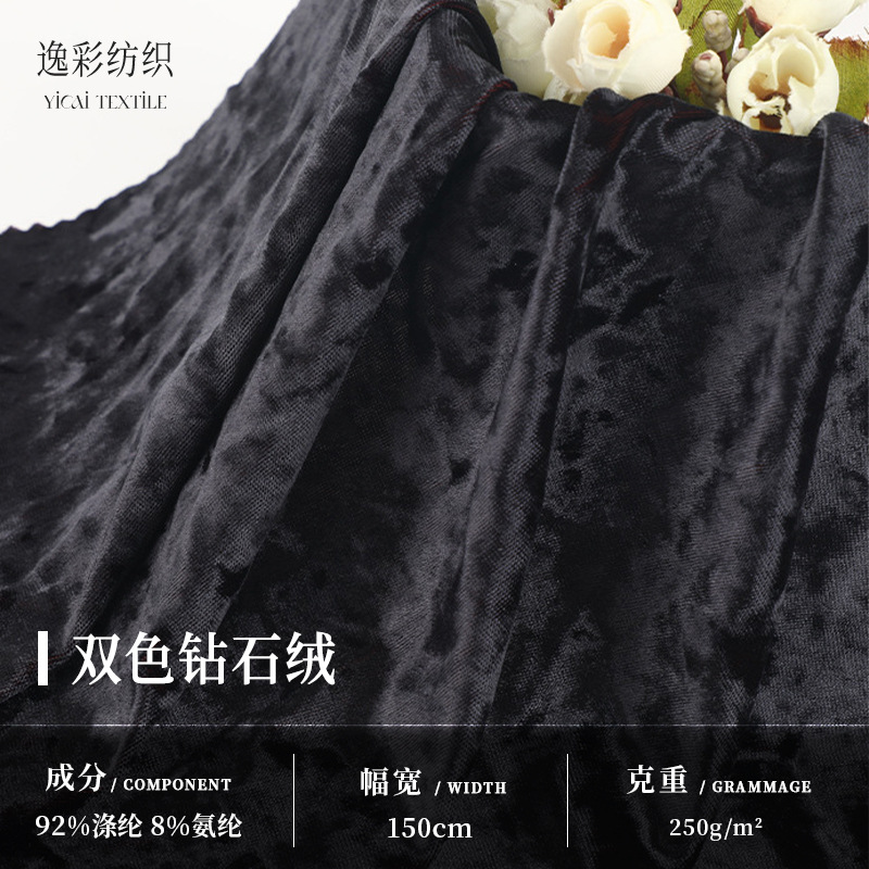 Two-Color Diamond Korean Velvet Fabric Thick Polyester Elastic Gold Velvet Non-Falling Velvet High-Definition Dress Design Fabric