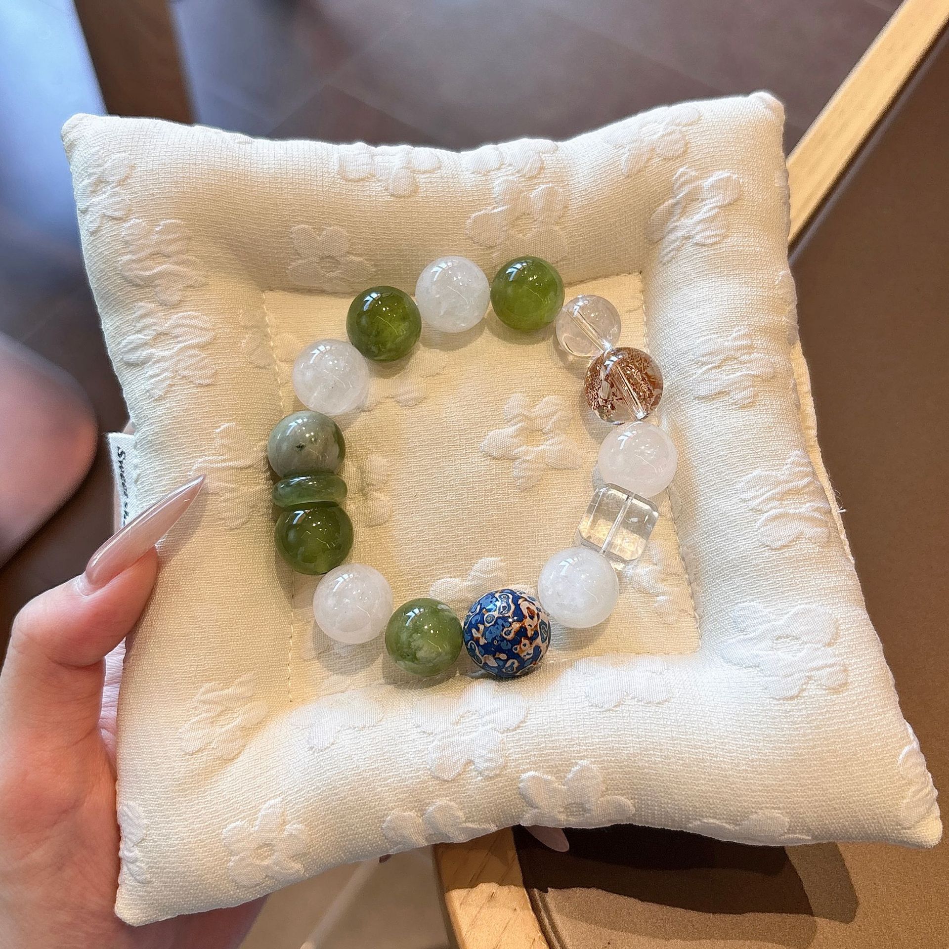 [Caramel Green Milk Cover] Large Red Rubber Flower Crystal Jade White Water Double-Pointed Crystal Bracelet Exclusive for Winter Wear