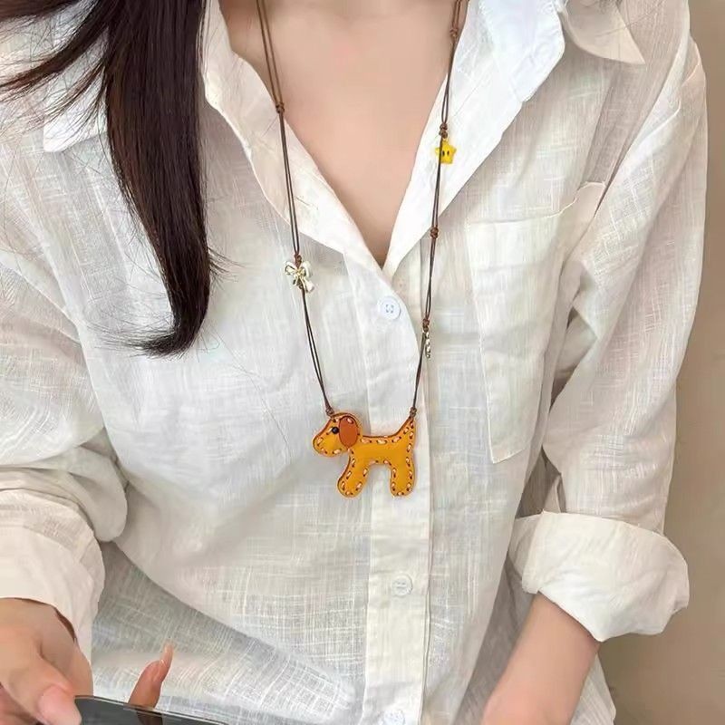 Handmade Puppy Bear Braided Rope Necklace Female Cartoon Cute Couple Sweatshirt Chain Niche Long Accessories Sweater Chain