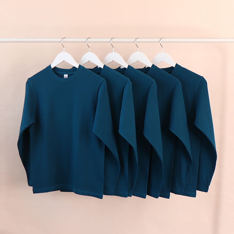 270g heavy gem blue cotton long-sleeved T-shirt men's and women's early autumn bottoming shirt thick small neckline loose fashion