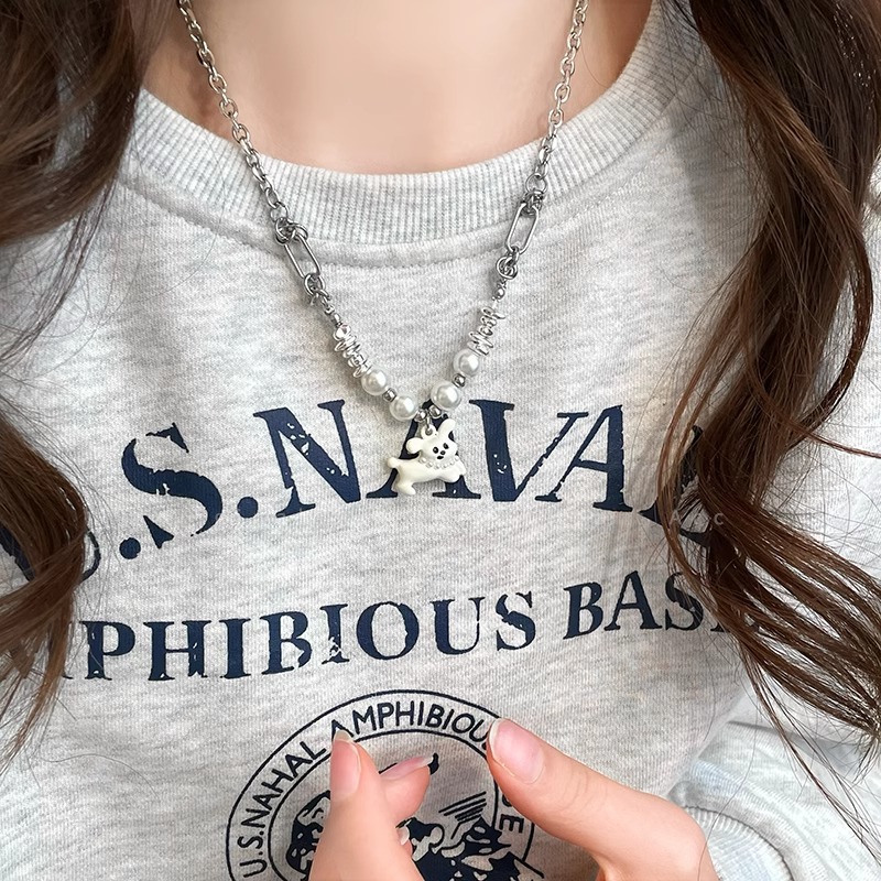 Cute Glaze Puppy Pearl Necklace Female Niche Design Stitching Sweater Chain Autumn and Winter Distinctive All-match Sweater Chain