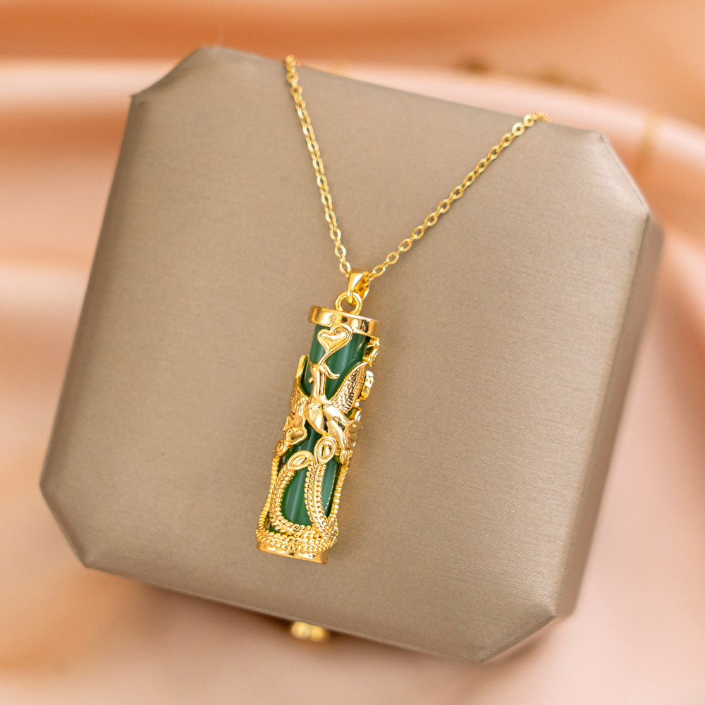 Wen Jian Cross-border Explosions Retro National Tide Fengzhu Necklace Niche Joker Show Temperament High Yan Value Hetian Jade Inlay