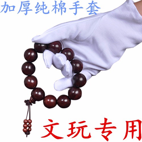 Gloves for Handling and Playing with Beads and Bracelets, Small Leaf Rosewood, Aged Antique, Universal Pure Cotton, White