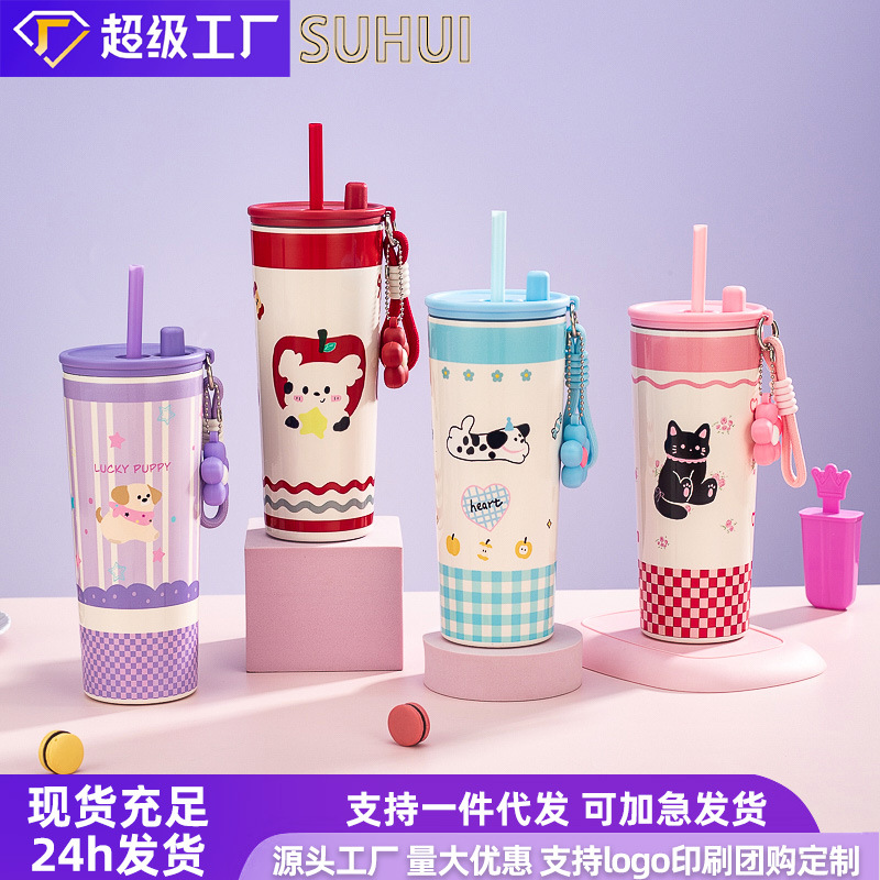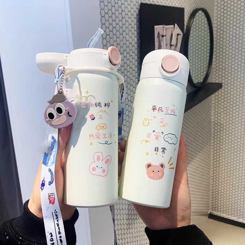 Women's Thermos Cup with Straw Portable High-value Internet-famous Water Cup Summer Ice Children's New 2025 Cute Cup