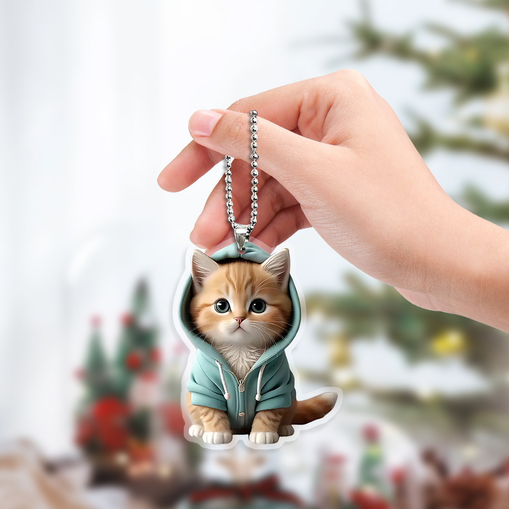 Cross-Border Cartoon Keychain Backpack Pendant Cute Hooded Blue Sweatshirt Kitten Hanging Acrylic Holiday Decoration