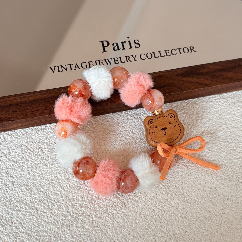 [Strawberry Bear Cake] Natural Red Glue Crystal Winter Stuffed Ball Bracelet for Women Cute and Interesting Creative Accessories