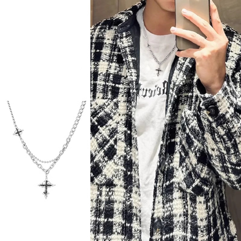 Niche Cross Necklace, Double-Layered Layered Decoration, Sweatshirt Chain, Men's Trendy, Cool and Handsome, American-Style Light Luxury Accessory