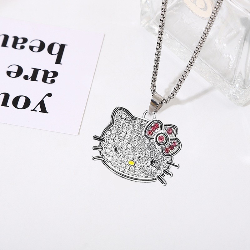 Cross-border new diamond cat pendant necklace fashion cute wind long necklace autumn and winter sweater chain wholesale