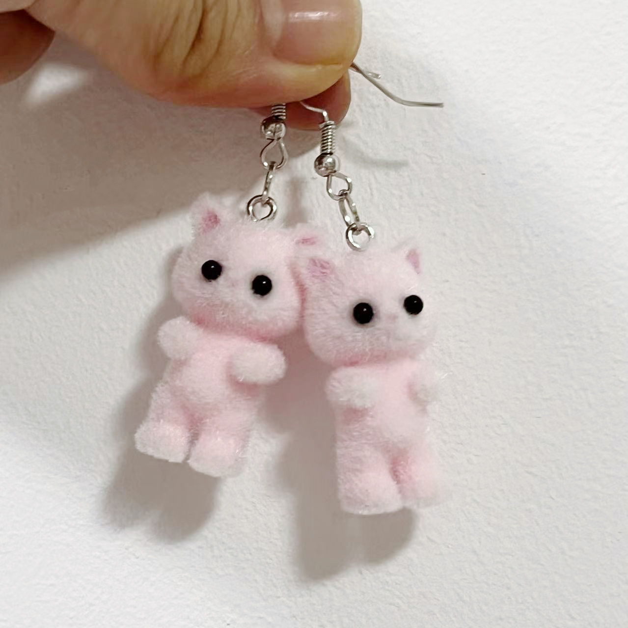 Flocking three-dimensional cat original autumn and winter new white gray earrings sweet earrings cat necklace
