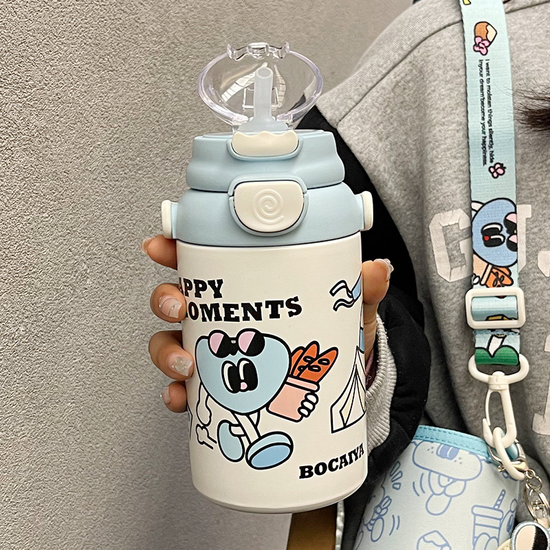 Thermos Cup Girl's High-value Cute 316 Double Drinking Cup New 2023 Crosbody Pot with Straw Cup