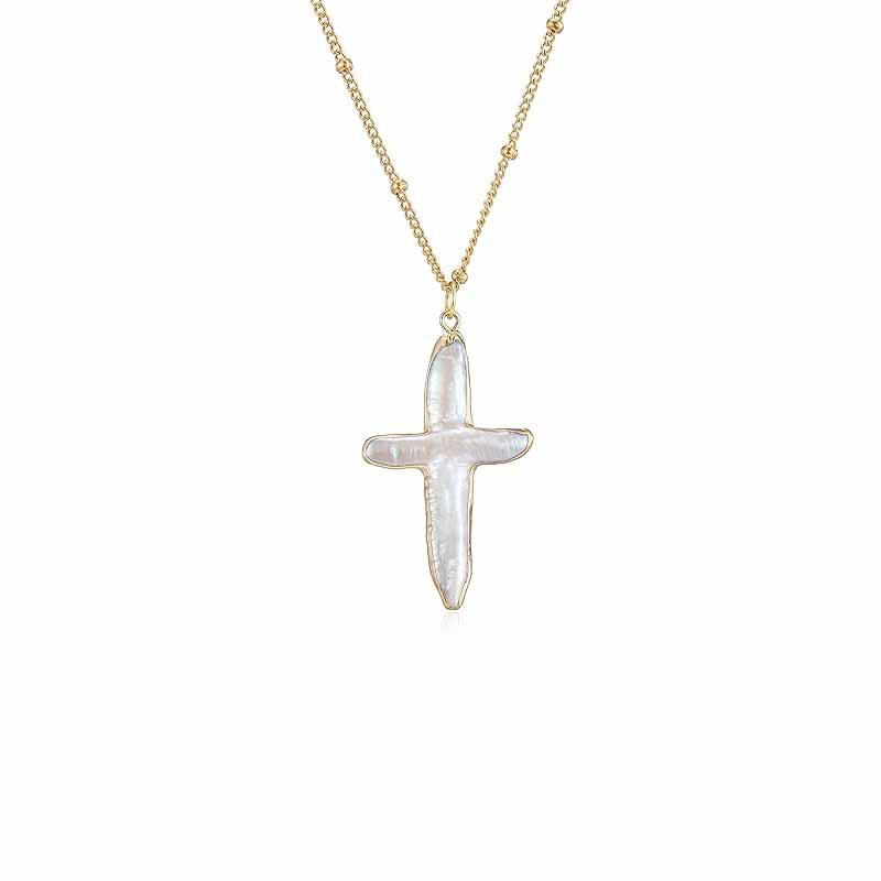 Amazon new fashion simple freshwater pearl cross necklace thick large cross pearl earrings wholesale