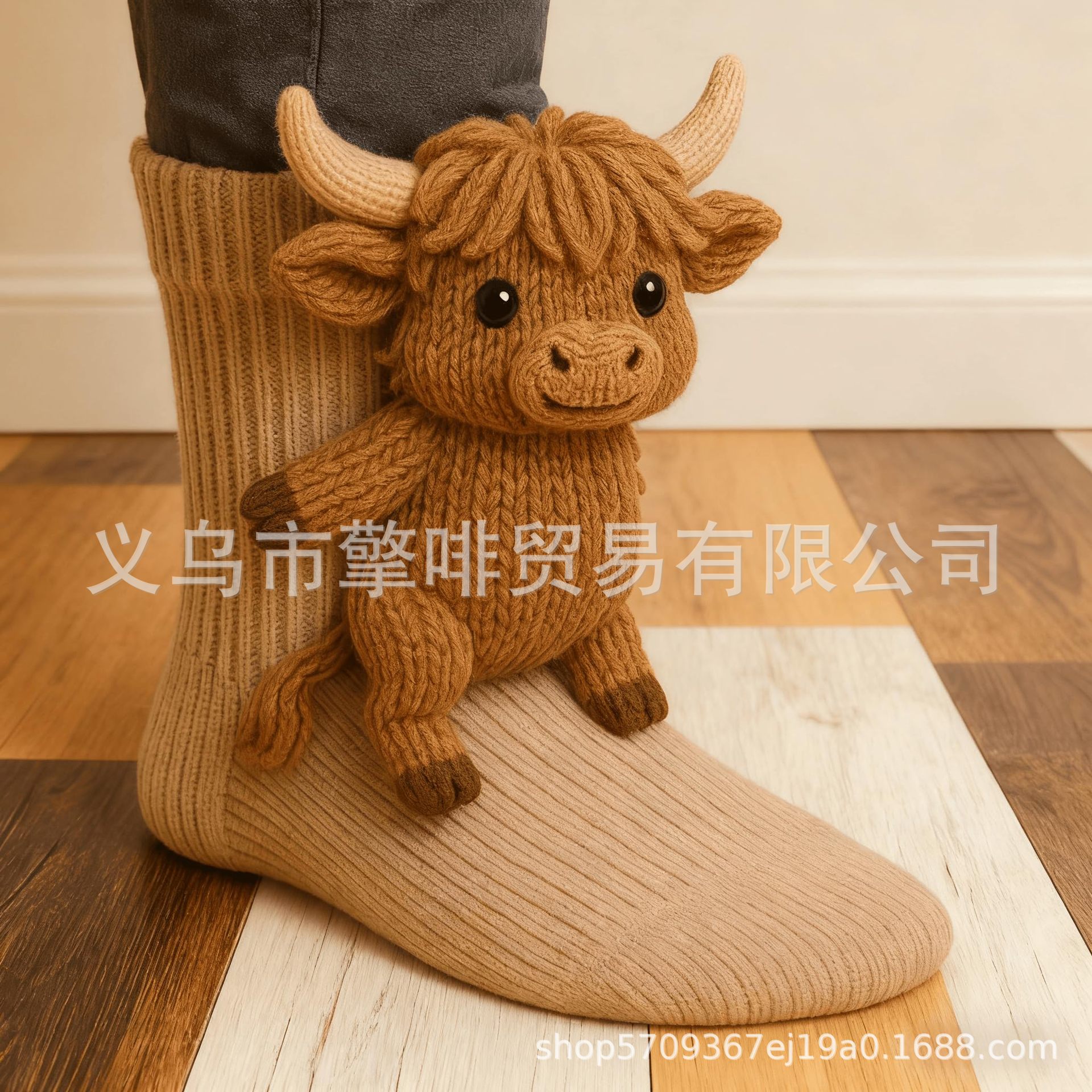 Cross-Border New 3D Knit Animal Socks Plush Crochet Animal Socks Cute Animal Socks