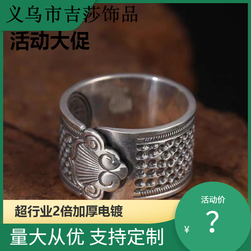 Thai Silver open retro Xiangyun ring men's fashion ring men's single ring Lucky Lucky thimble ring ethnic