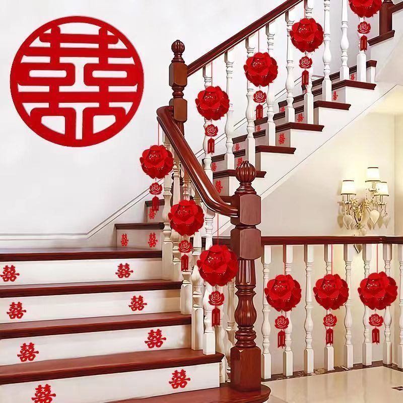 Stair Handrail Decoration Wedding Pendant Wedding Room Wedding Happy Word Pendant Arrangement Rural New House Living Room Pendant Set