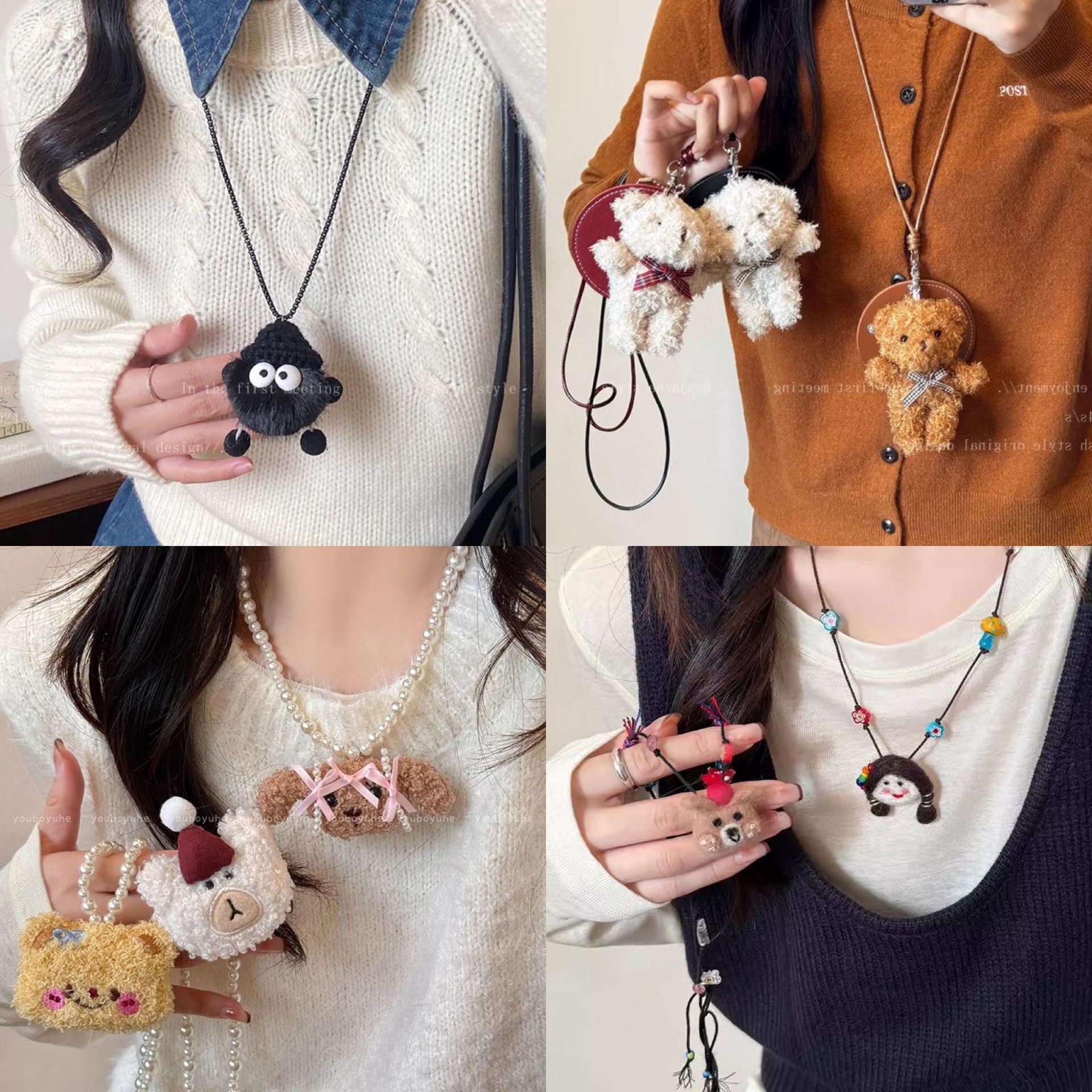 New Cute Plush Bear Pendant Necklace Winter Sweater Sweater Long Chain Cartoon Necklace Men's and Women's Accessories