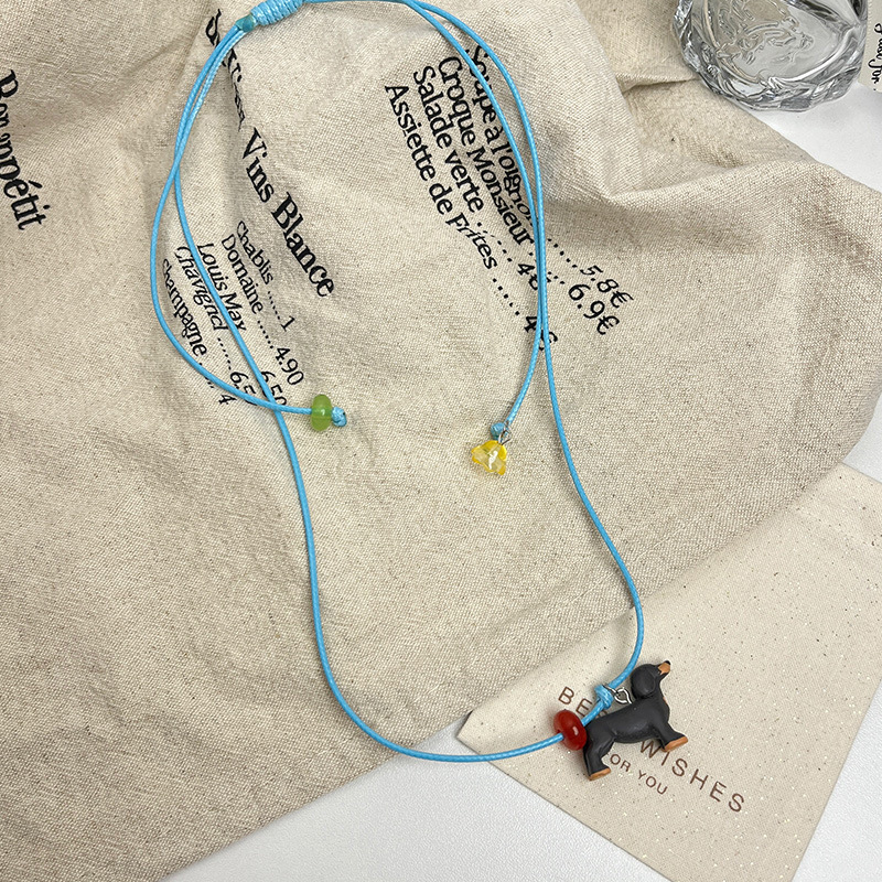 Cute Stereo Cartoon Dachshund Pendant Necklace for Women Blue Leather Rope Puppy Long Sweater Chain Sweatshirt Chain Accessories