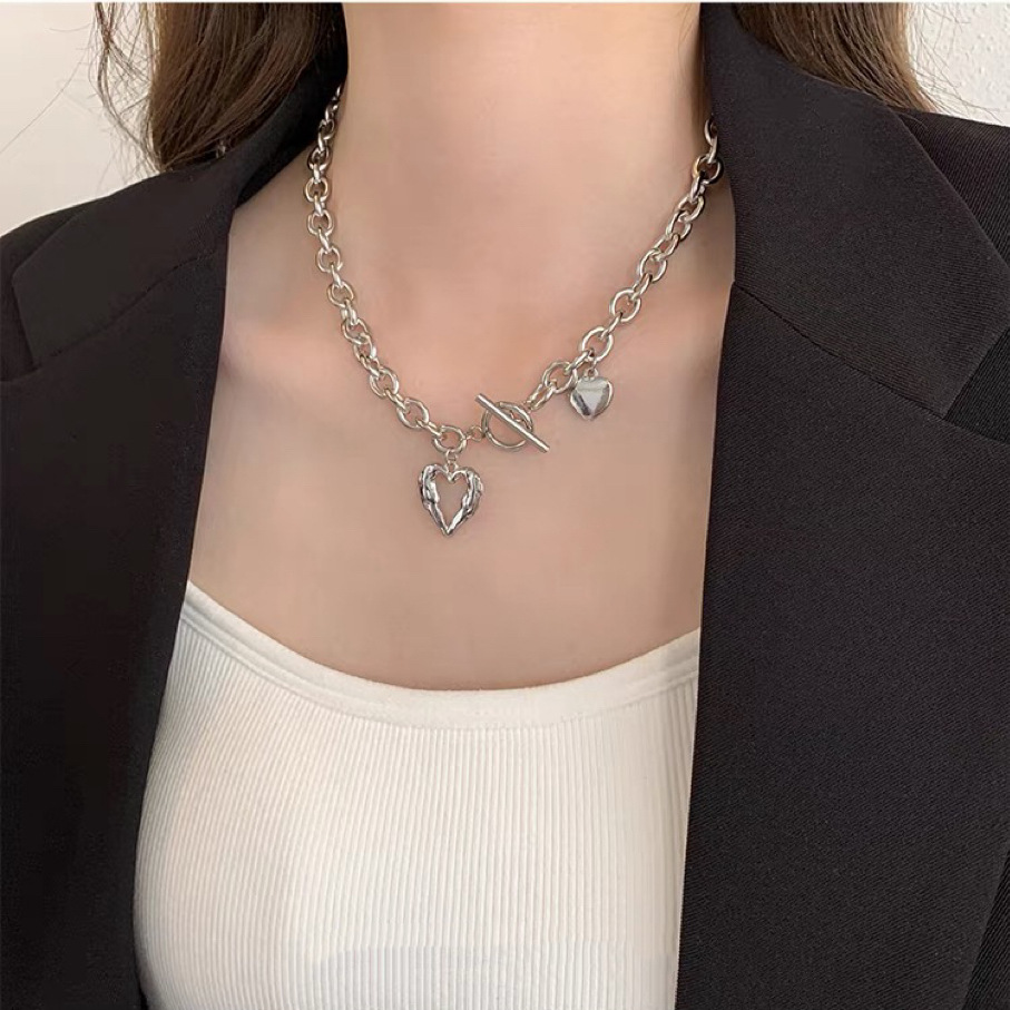 Full body titanium steel non-fading hollow heart necklace jewelry men's trendy hip hop otbuckle design sweater sweater chain women