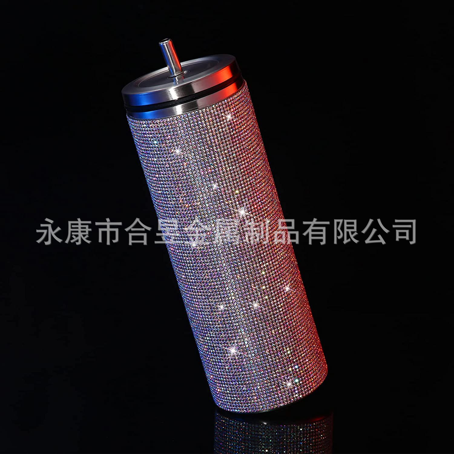Southeast Asia cross-border cold cup flash Diamond cute portable water cup Diamond-embedded straight Cup 20oz Diamond vacuum cup