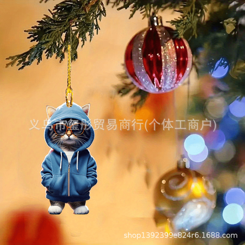 New Christmas Blue Sweatshirt Cat Christmas Tree Decoration Car Acrylic Flat Hanging Pendant 2D Pendant