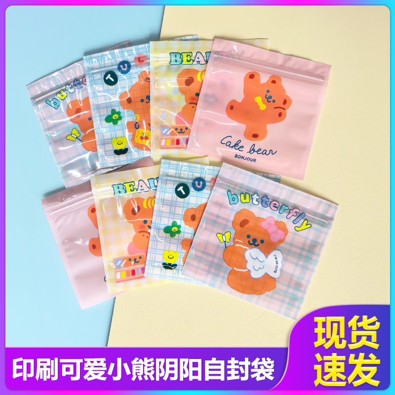 Ins Bear Cartoon Cute Snack Packaging Bag Transparent Hairpin Jewelry Ziplock Bag Half Yin and Yang Colorful Sealed Bag