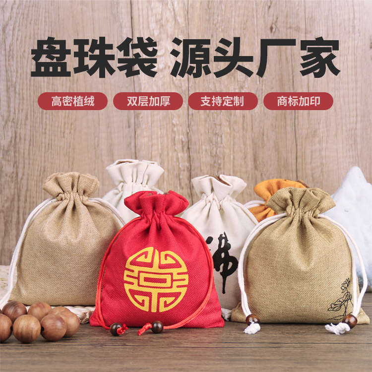 Large-capacity Thickened Double-layer Disc Beads Beads Drawstring Cloth Bag Handstring Tray Play Bag Beads Pure Handmade Linen Cloth Play Bag