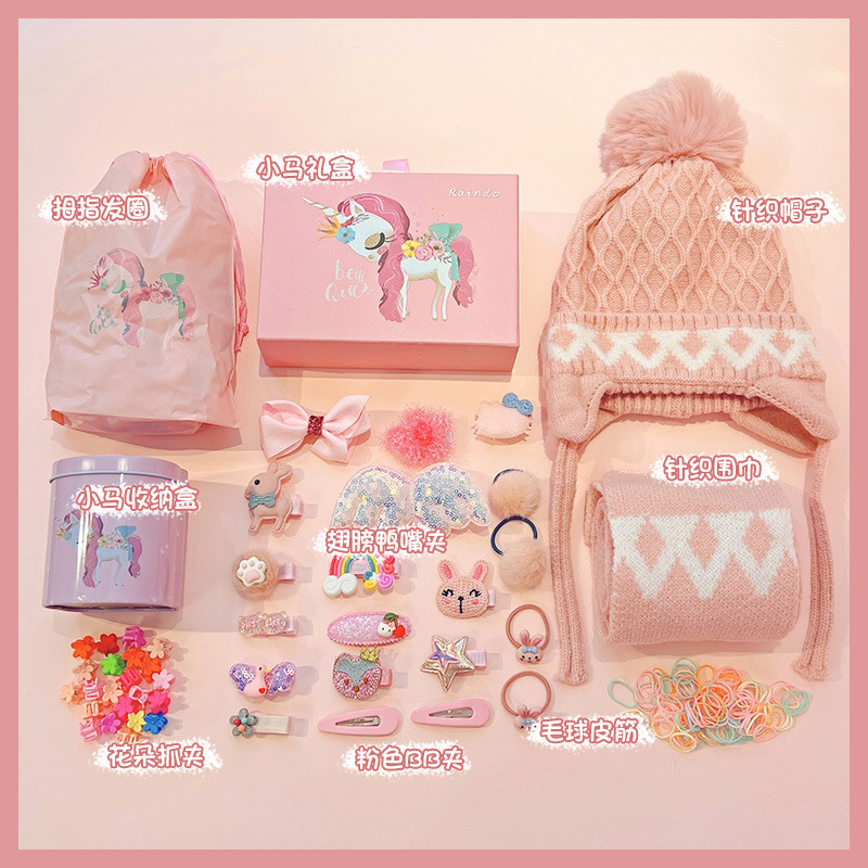 Little Princess Castle Jewelry Box Children's Birthday Gift Cute Hairpin Rubber Tendon Headwear suit Girls' Hair Accessories Gift Box