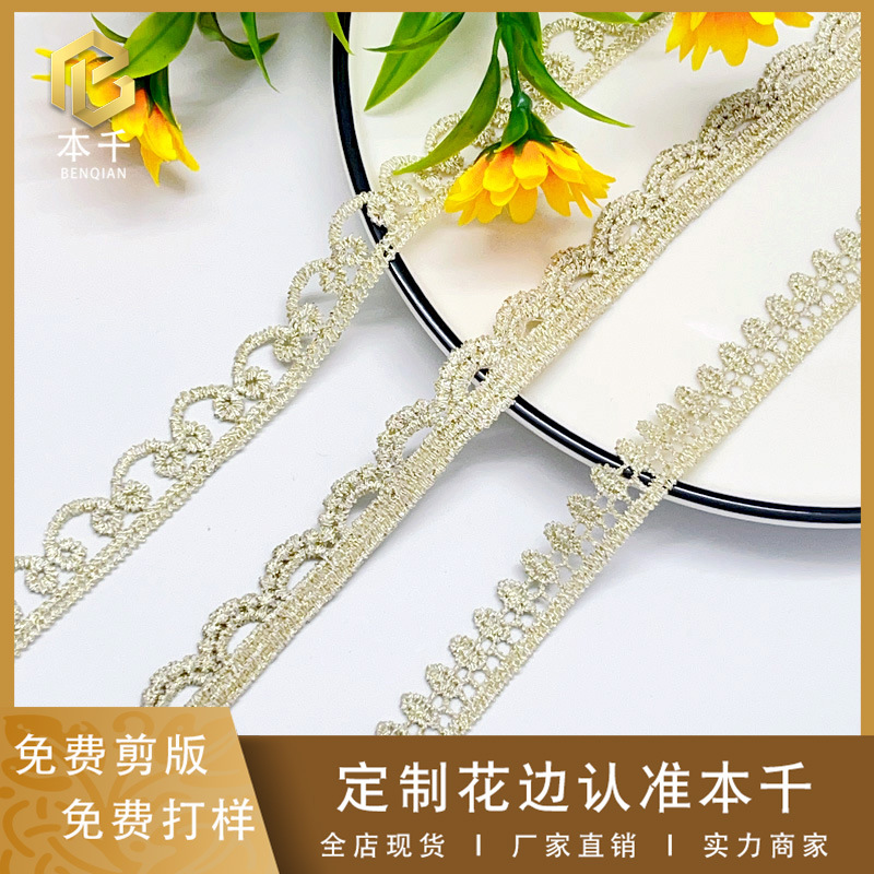 Gold lace water soluble barcode unilateral embroidery 1.5cm children's clothing accessories accessories DIY necklace lace spot