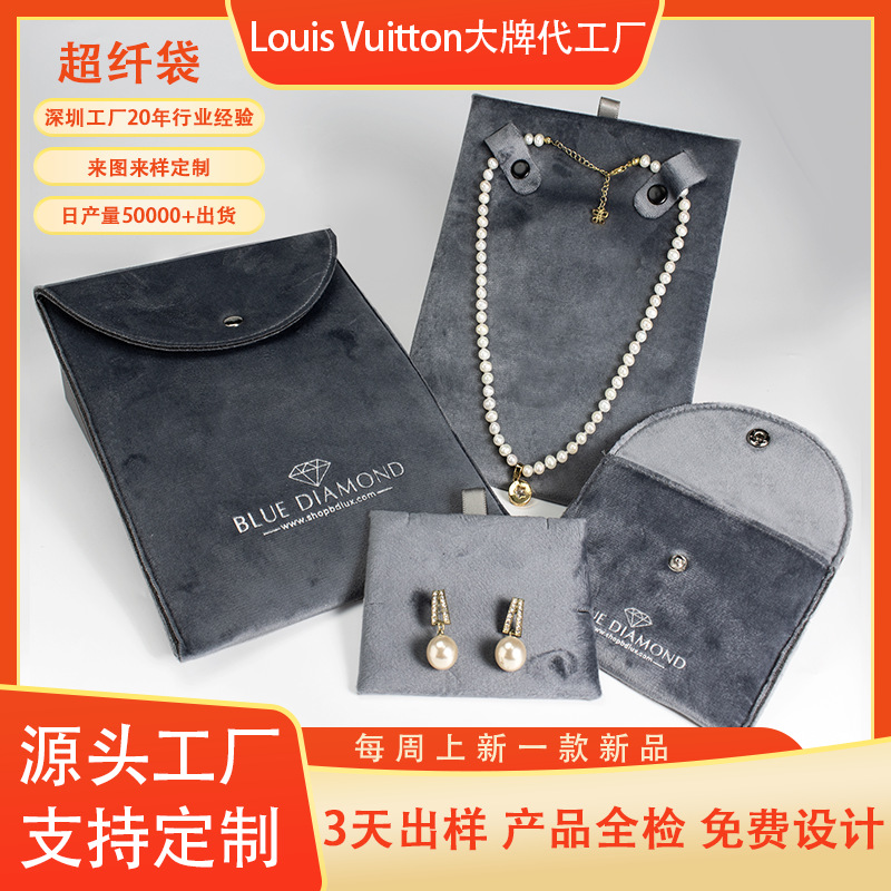 Suede Flap Bag Light Luxury Jewelry Box Thickened Moisture-proof Gift Packaging Flat for Fashion Factory Direct Printable logo
