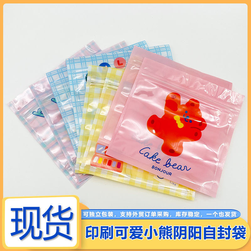 Ziplock Bag, Cute Bear Seal Bone Bag, Colorfulful Yin and Yang Packaging Bag, Cartoon Gift Storage Bag, Jewelry Seal Bag