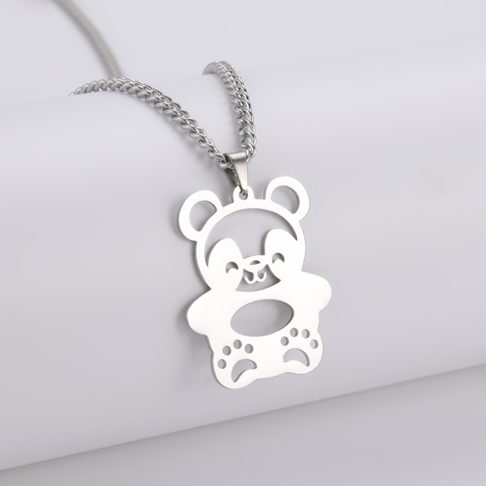 Cute Hollow Panda Baby Fashion Titanium Steel Necklace ins National Tide Sweater Chain All-match Accessories Holiday Gift