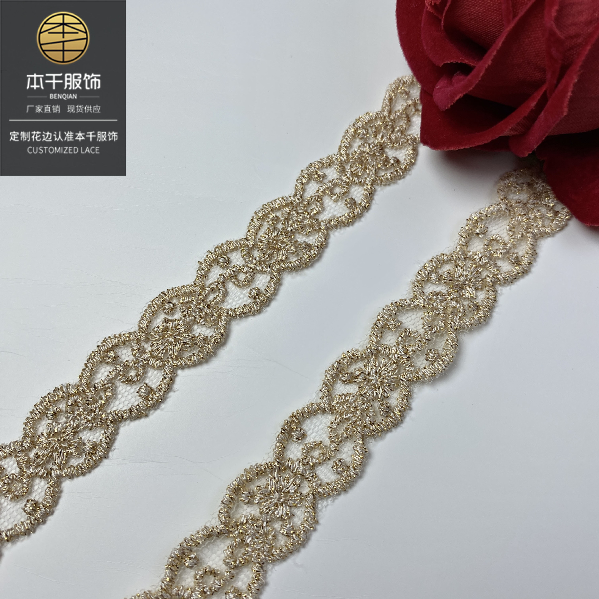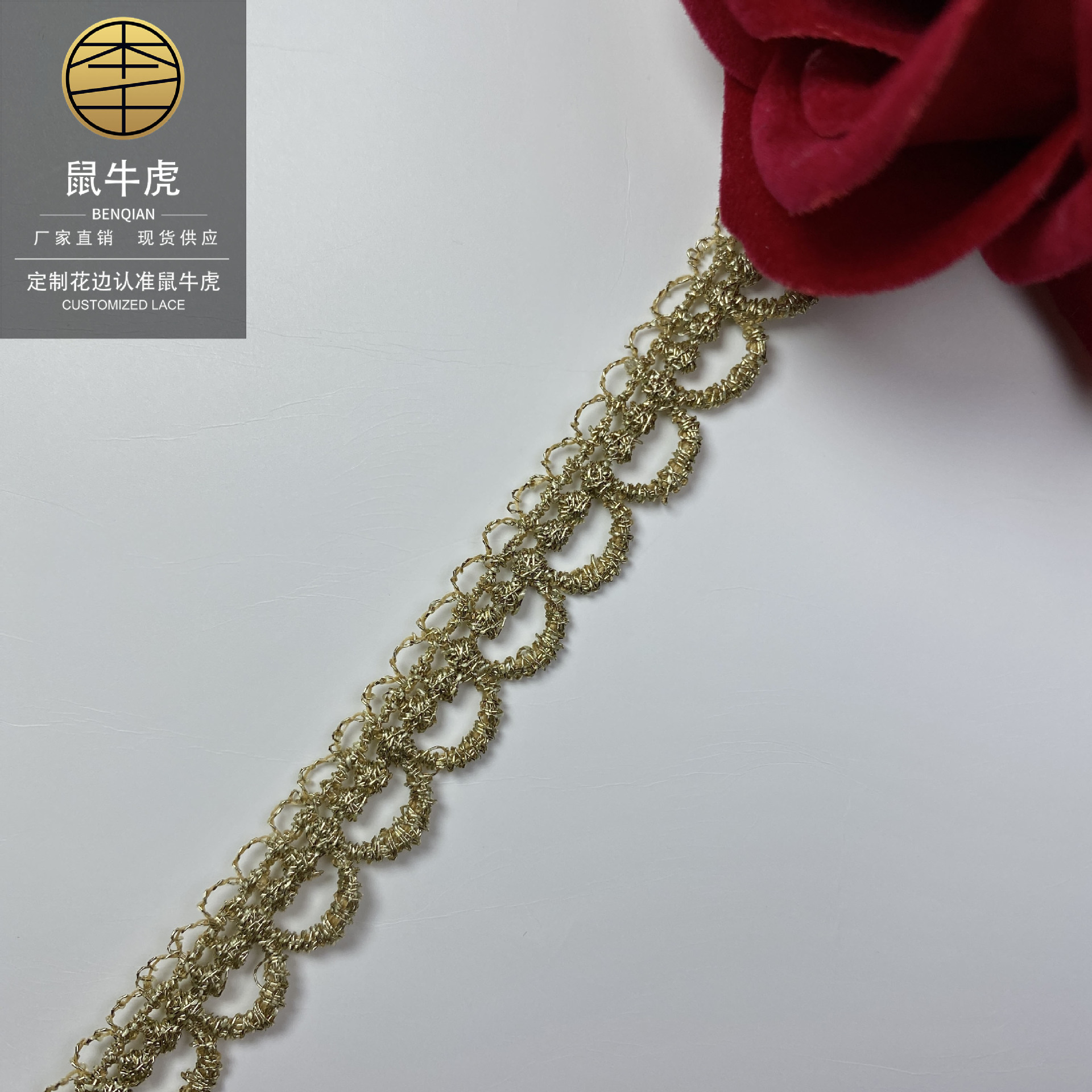 Light gold thread embroidery small lace jewelry barcode 1cm necklace earrings accessories children's clothing Lolita handmade