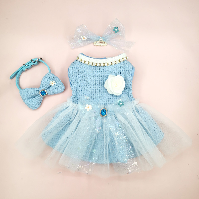New handmade pet dog clothes spring and autumn cat Princess fluffy winter dress Pearl Camellia lace collar