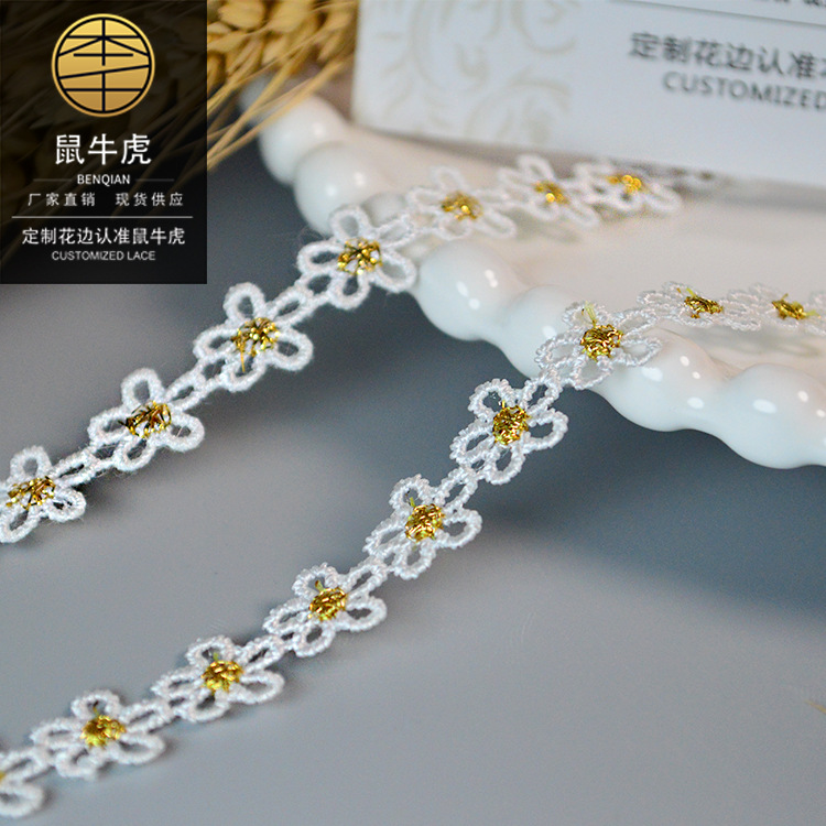1cm gold thread double color small flower water soluble lace necklace accessories hand embroidery DIY children's clothing accessories in stock