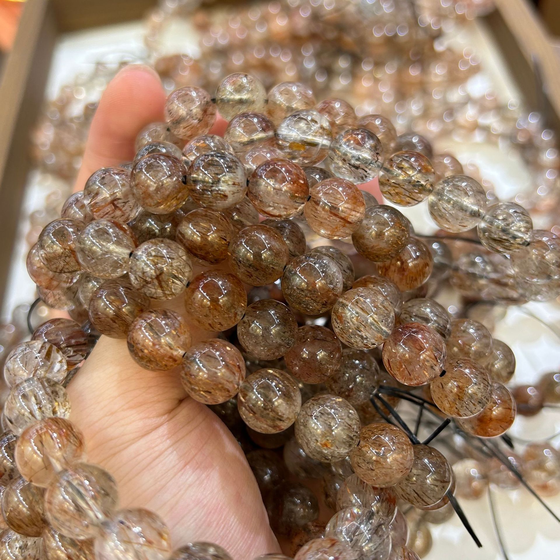 Natural golden hair crystal round bead bracelet crystal transparent hair clear factory wholesale fortune crystal loose bead accessories