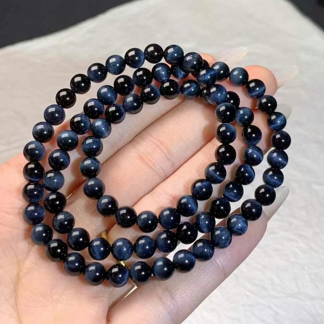 Natural blue tiger stone three-circle bracelet blue tiger eye stone multi-circle bracelet with clear pattern with cat's eye effect jewelry wholesale