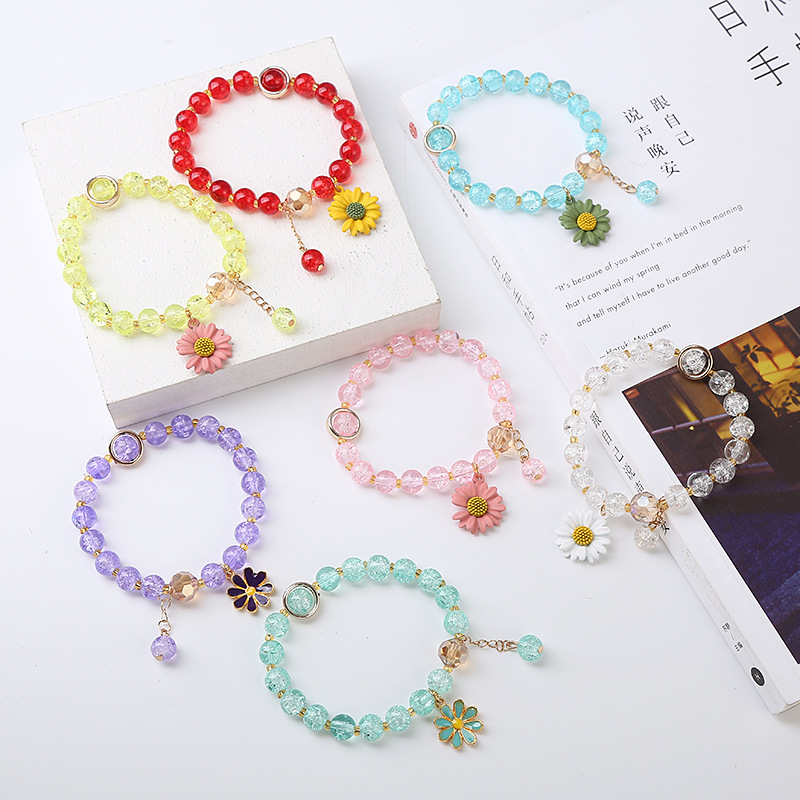 2020 TikTok same style stall supply hot crystal Daisy Bracelet girl girlfriends small clear flower bracelet wholesale