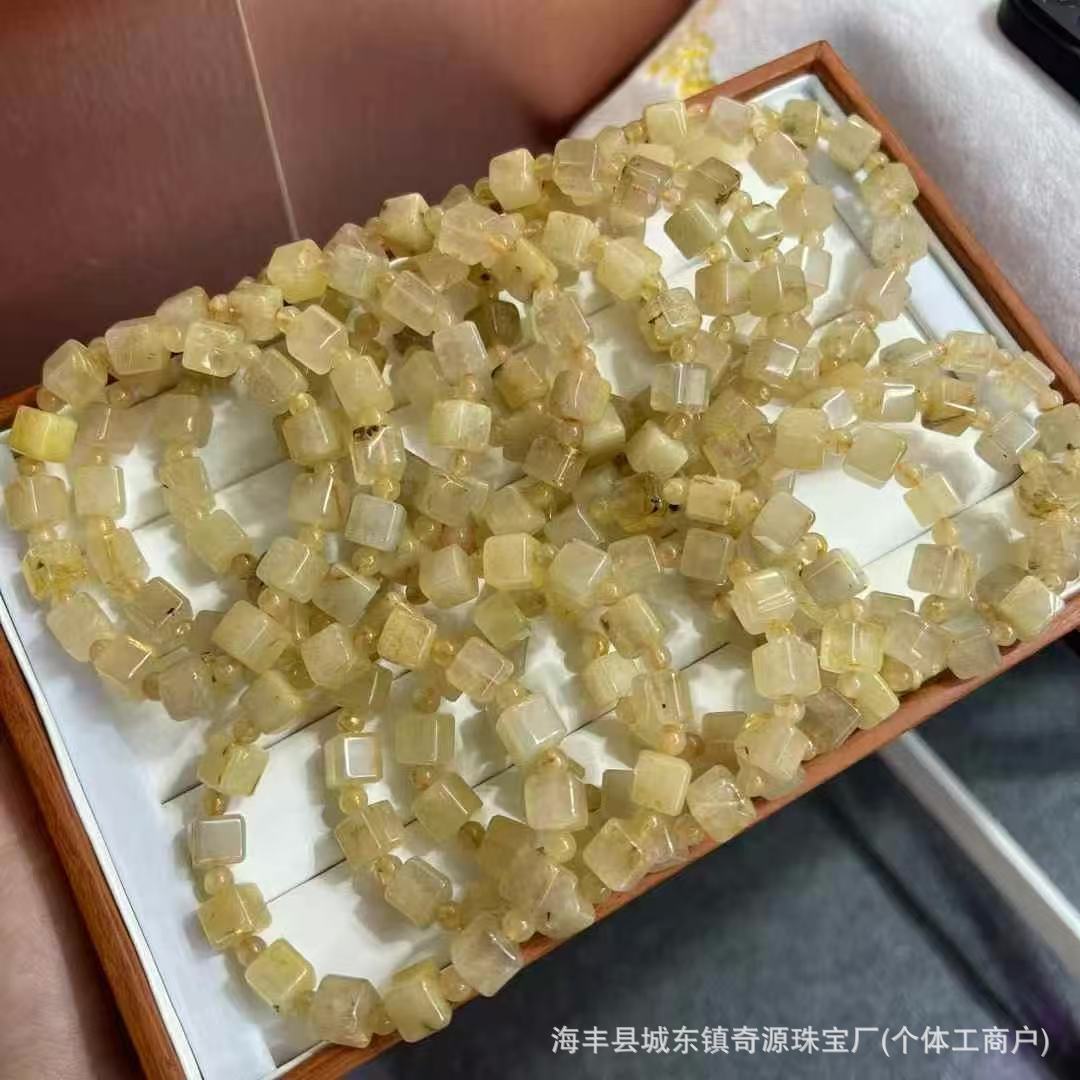 Manufacturer Wholesale Natural Golden Hair Crystal Rubik's Cube Bracelet, Clean Crystal, Transparent Hair, Clear and Smooth, Live Broadcast Hot Style