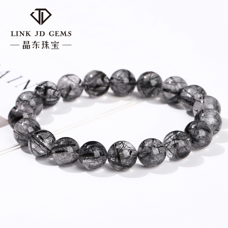 Jingdong Jewelry Natural Black Hair Crystal Bracelet Ice Clear Body Hair Clear Men's and Women's Personality Single Circle Bracelet Wholesale